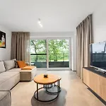 2-slaapkamer Luxe App Aan Zee Omringd Door Groene Oase - 6P heeft een terras en ligt op 10 minuten autorijden van het Strand van Oostende. Gasten die met de auto reizen kunnen gebruik maken van parkeerplaatsen ter plaatse.